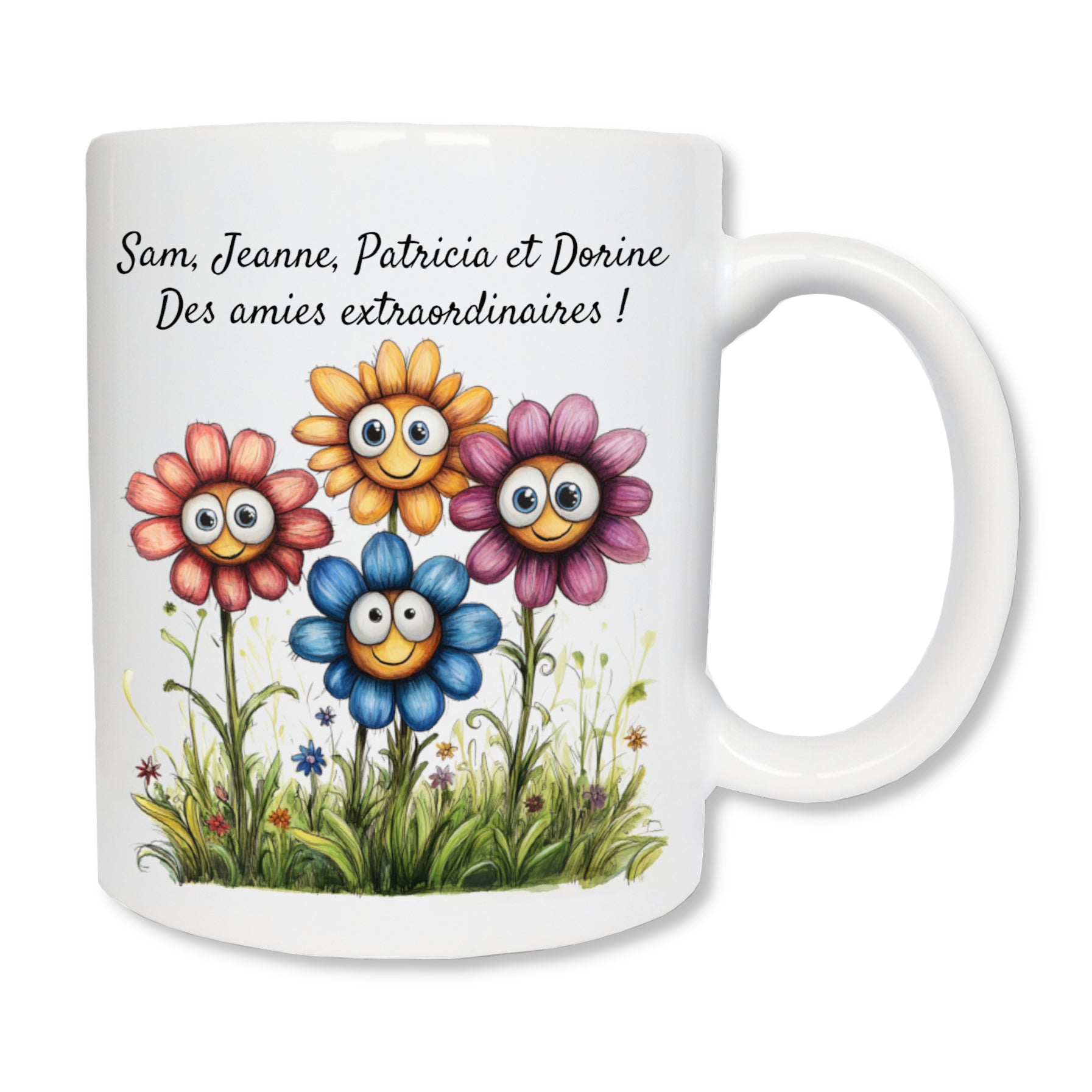 Personalisierte Blumentasse für 4 Freundinnen / Schwestern / Kolleginnen