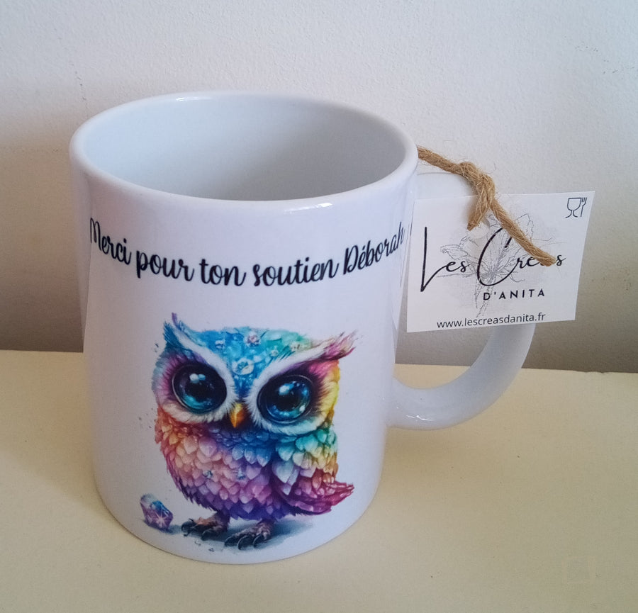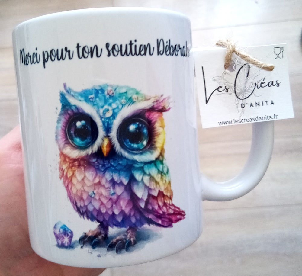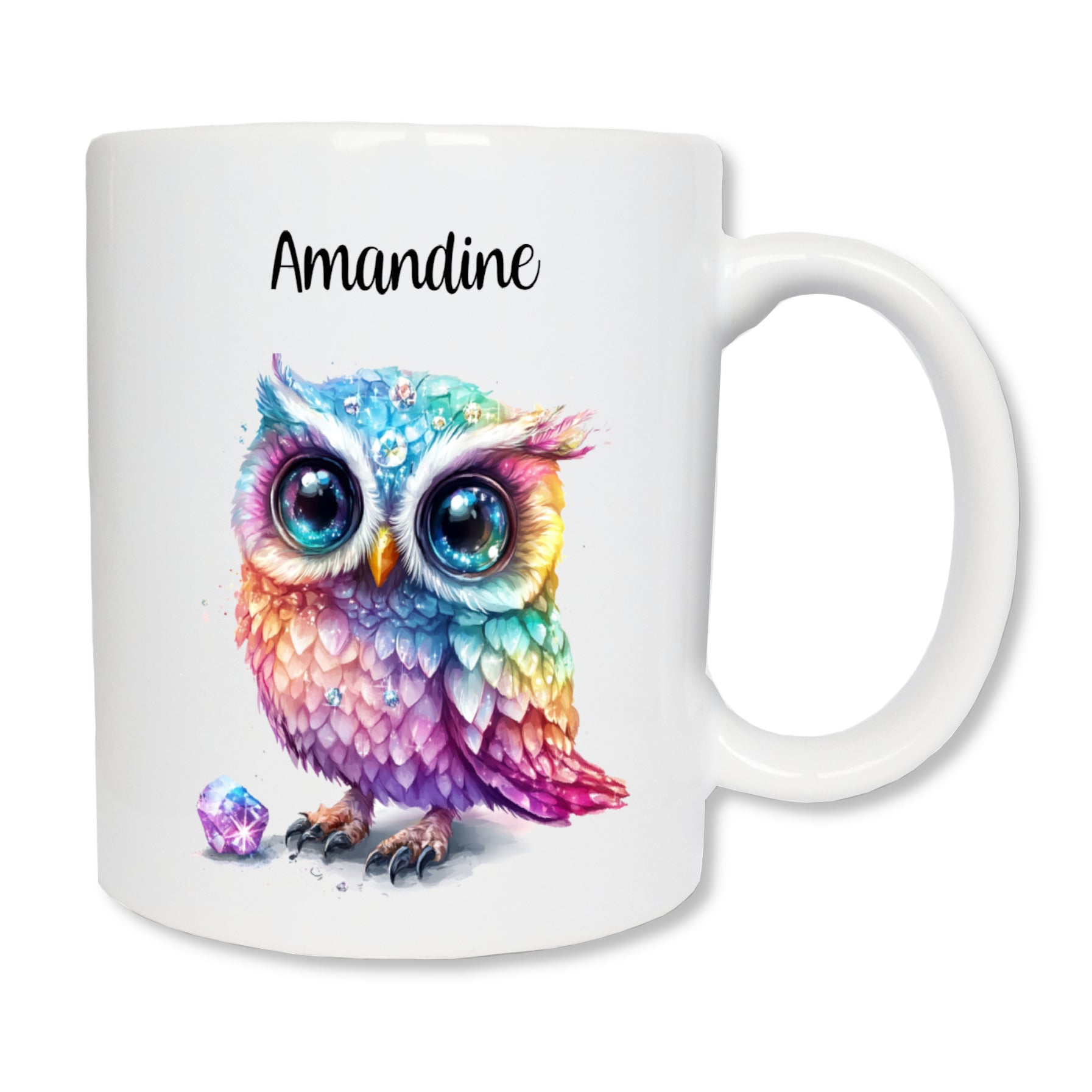 Give a unique and personalized gift with this beautiful mug featuring a diamond owl.