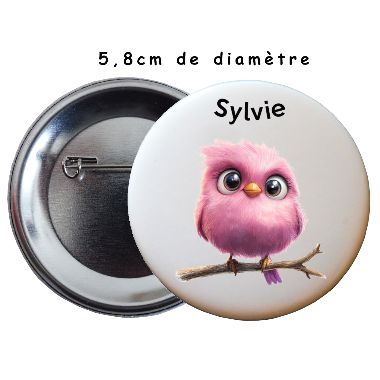 Personnalisez votre badge avec un joli oiseau et votre prénom pour un look unique !
