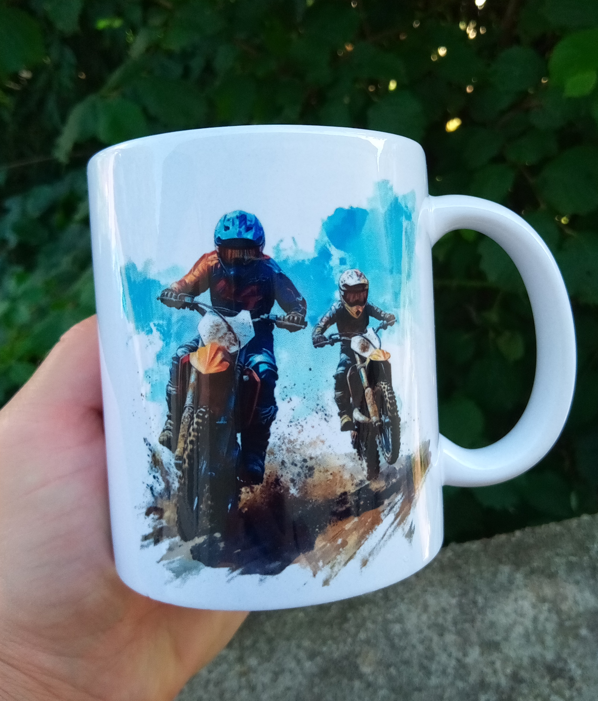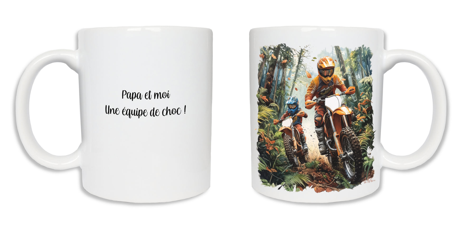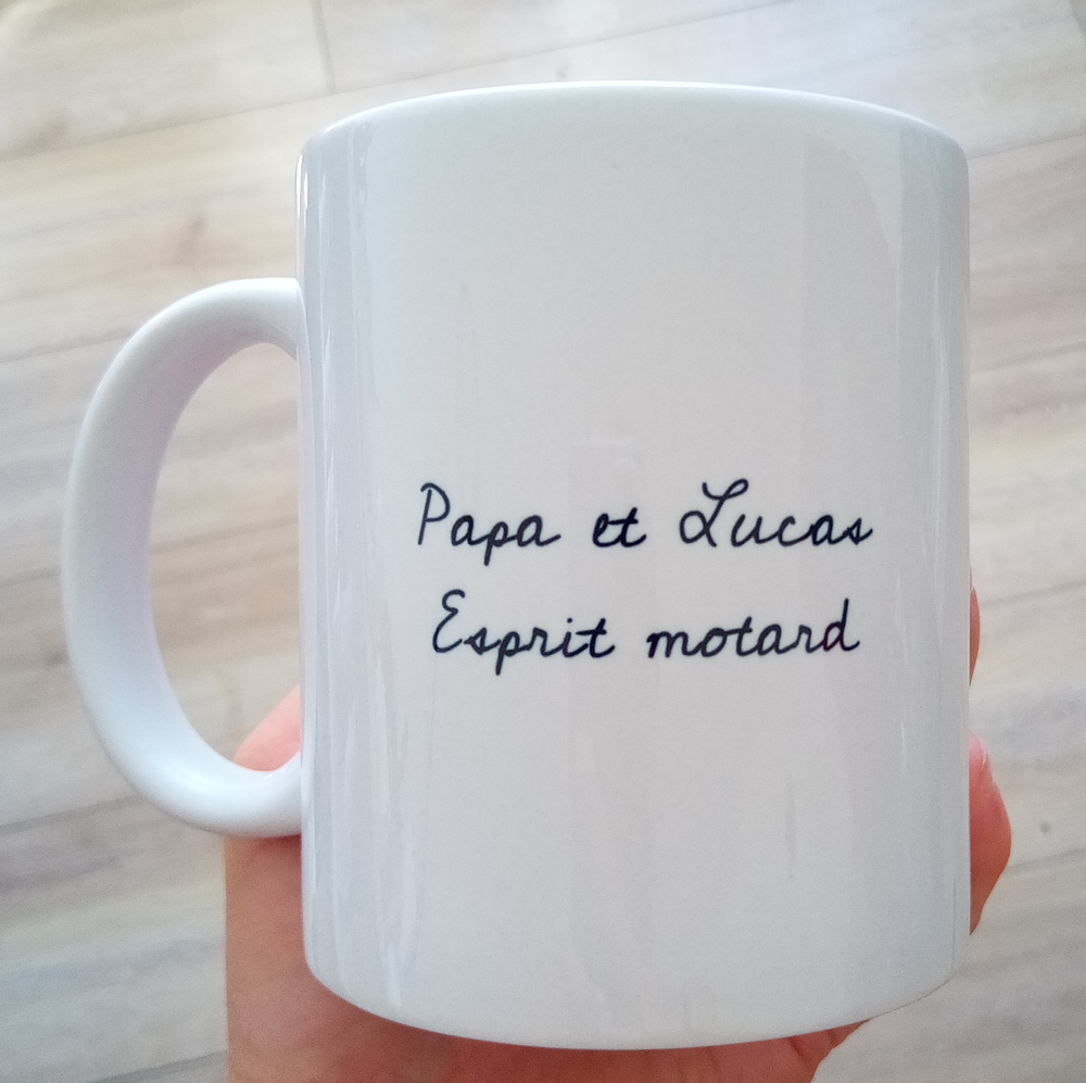 Les motards qui vont être heureux grâce à ce mug personnalisable, représentant un papa et son fils !