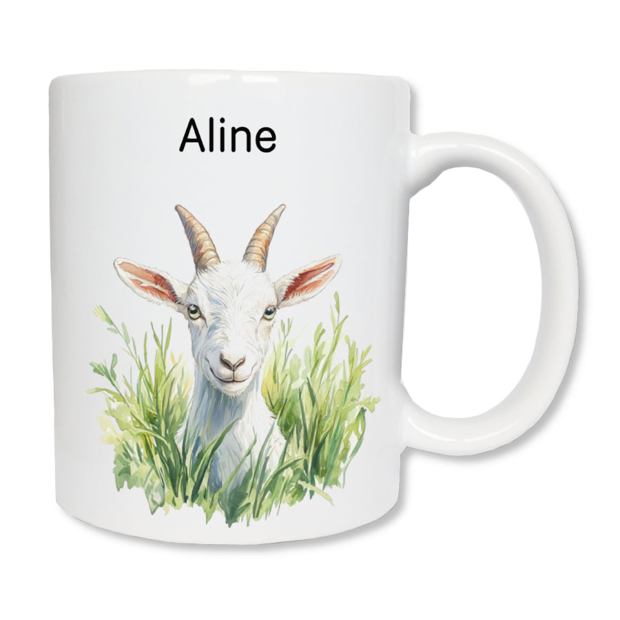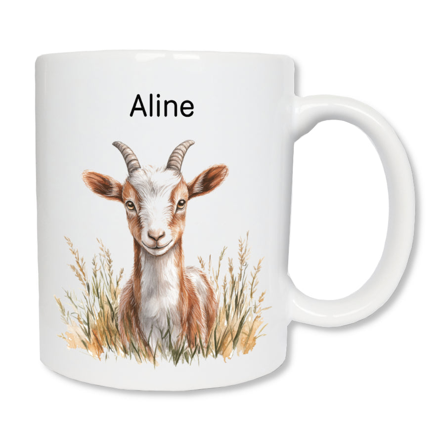 Une tasse personnalisé avec un jolie chèvre. Plusieurs couleurs de pelages vous sont proposés.